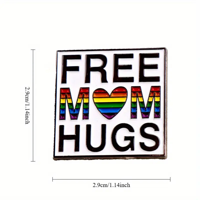 Show your support with the Free Moms Hug Pin, a playful way to spread love and kindness. This square-shaped pin adds a cheerful touch to any outfit while promoting a message of warmth and acceptance. Perfect for starting conversations and sharing positive vibes wherever you go!