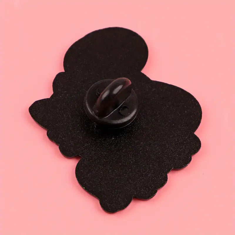 Size: 1 1/2"W x 1 1/4"H black enamel pin