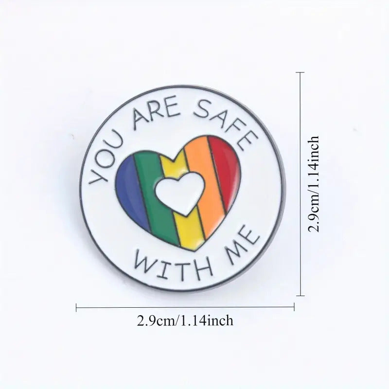 Wear a little love wherever you go with the You Are Safe With Me Pin. This charming heart-shaped accessory is a playful reminder of comfort and protection, perfect to brighten your day or gift to someone special. Add a touch of warmth and whimsy to your outfit while spreading a message of care and safety.
